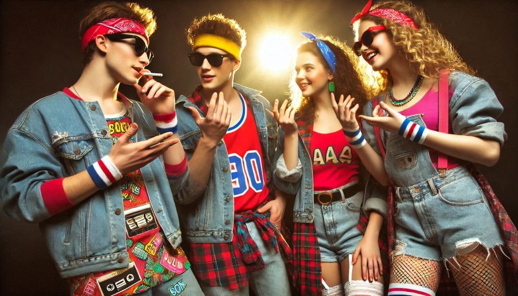 Rebellion was another defining characteristic of the decade, particularly among teenagers who used slang to push back against authority and express their independence. Phrases like “eat my shorts” or “lame” carried an air of defiance, allowing young people to carve out their own space in a world often dominated by rules and expectations. Slang became a tool for asserting autonomy and rejecting conformity, creating a sense of belonging within countercultural movements like punk rock, skateboarding, and the burgeoning hip-hop scene. The words they chose weren’t just descriptors—they were declarations of identity and resistance.