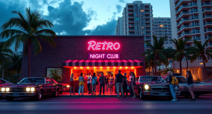 Miami’s nightlife scene offered another dimension, with venues that blended the tropical climate with electronic dance music, early house beats, and Latin influences. Clubs along Ocean Drive and in the downtown area became hubs for youth eager to experience the night in style. Neon lights reflected off the ocean breeze, pastel clothing and sun-kissed skin contrasted with blacklight-enhanced interiors, and DJs integrated synthesizers with Latin rhythms, creating a vibrant fusion that felt uniquely Miami. The city became a playground for those wanting to combine fashion, music, and social freedom under neon skies.