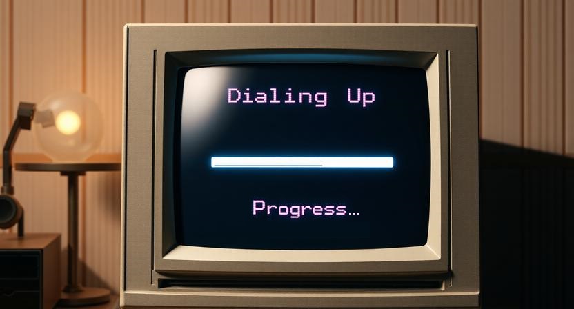 Early home modems operated at speeds such as 300, 1200, or 2400 baud, transmitting only a small amount of data each second. Even as technology advanced and speeds climbed to 9600, 14.4k, 28.8k, and eventually 56k, connections remained tightly constrained. Downloading a simple text file could take minutes, while images loaded line by line, slowly revealing themselves from top to bottom. Large files were often left to download overnight, with no guarantee they would finish successfully.